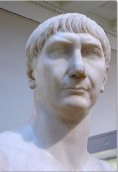Trajanus, Marcus Ulpius wordt geboren op 18 september 53 te Italica, bij Sevilla. Daarmee is hij de eerste Romeinse keizer die buiten Italië geboren is. Trajanus is de zoon van Marcus Ulpius Traianus (ook bekend als Trajanus Pater), een vooraanstaand senator en generaal uit een beroemd Etruskisch geslacht, de Ulpii. De familie had zich enige tijd na de Tweede Punische Oorlog gevestigd in de provincie Baetica in Spanje en Trajanus was slechts één van de vele bekende Ulpii. Trajanus dient, onder zijn vader Marcus Ulpius, vele jaren in Syrië als tribunus militum en doorloopt daarna een succesvolle, militair getinte senatorencarrière.